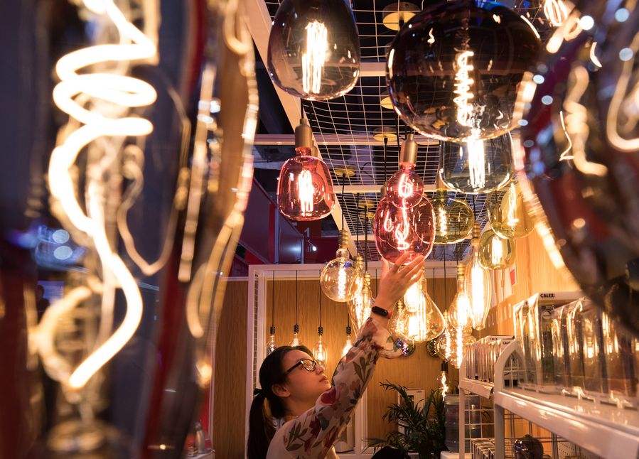 Photo taken on Nov. 5, 2019 shows LED lights from the Netherlands at the Sci-tech Life exhibition area during the second China International Import Expo (CIIE) in Shanghai, east China, . The second CIIE kicked off Tuesday at the National Exhibition and Convention Center in Shanghai. (Xinhua/Jin Liwang)