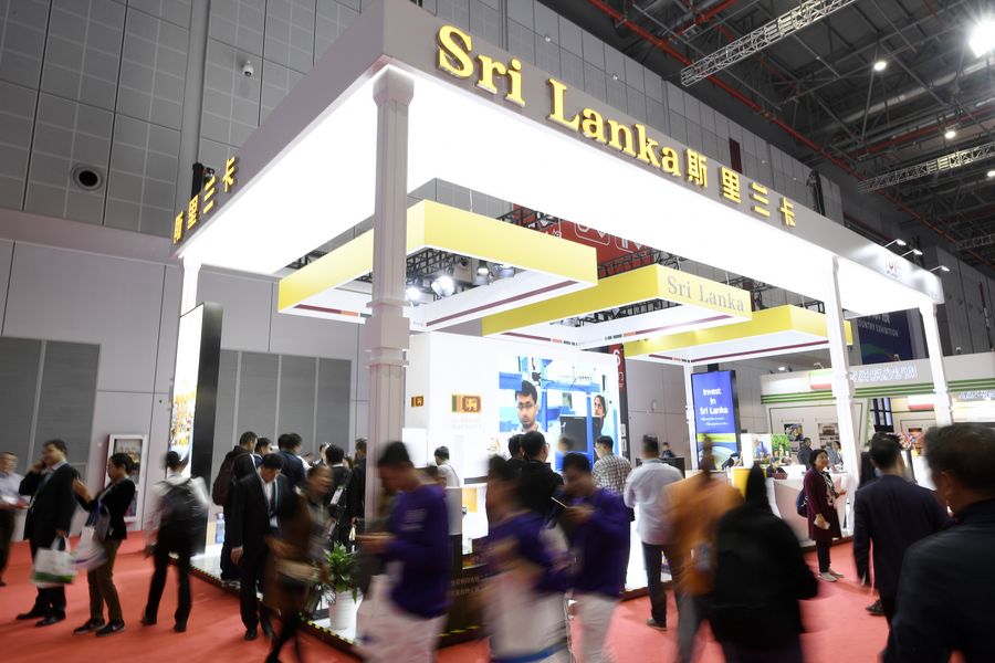 People visit the Sri Lanka pavilion during the second China International Import Expo (CIIE) in Shanghai, east China, Nov. 6, 2019. (Xinhua/Wang Peng)