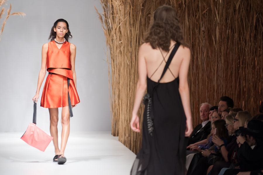 Models present creations of Hungarian fashion designer Nora Sarman during a fashion show at the Marie Claire Fashion Days in Budapest, Hungary. (Photo by Attila Volgyi/Xinhua)