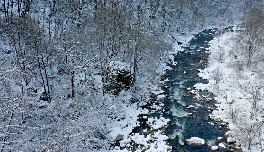 Aerial photo taken on Nov. 25, 2019 shows part of the snow-covered Qinling Mountains in Xi'an, northwest China's Shaanxi Province. (Xinhua/Liu Xiao)