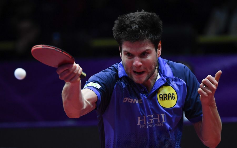 Ovtcharov returns a shot during the men's singles quarterfinal match against Ma Long. (Xinhua/Xue Yubin)