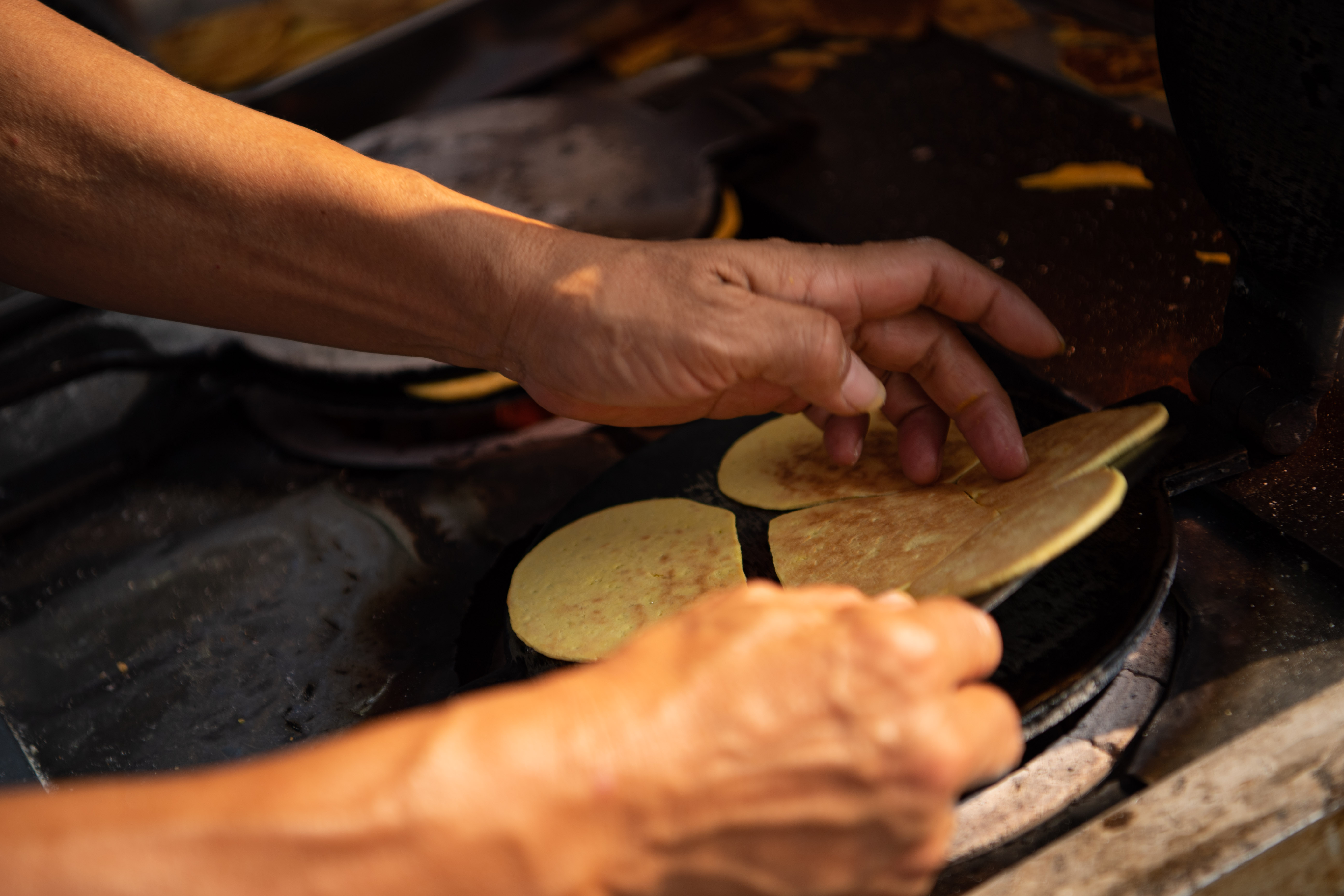 Added with peanut butter or condensed milk, the egg waffle is a typical local snack.