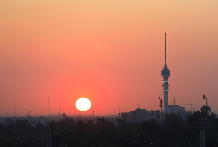 The skyline in Baghdad, capital city of Iraq, Jan. 7, 2020. Baghdad is under the spotlight after Iranian general Qassem Soleimani, former commander of the Quds Force of Iran's Islamic Revolution Guards Corps, was killed in a U.S. airstrike near Baghdad International Airport on Jan. 3. (Xinhua/Zhang Miao)