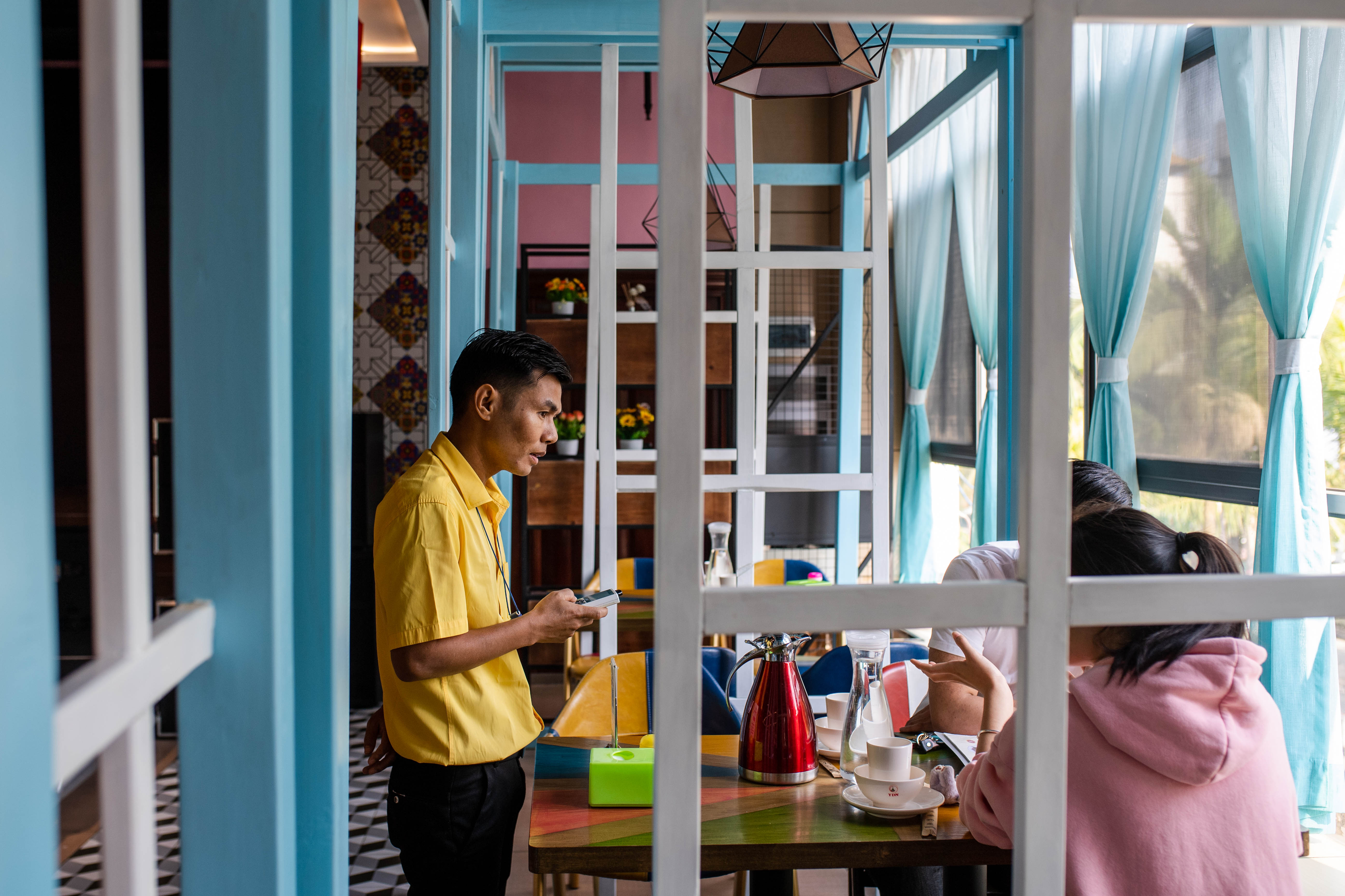 An employee from Myanmar works in a restaurant in Jinghong City, southwest China's Yunnan Province, Jan. 9, 2020. (Xinhua/Hu Chao)