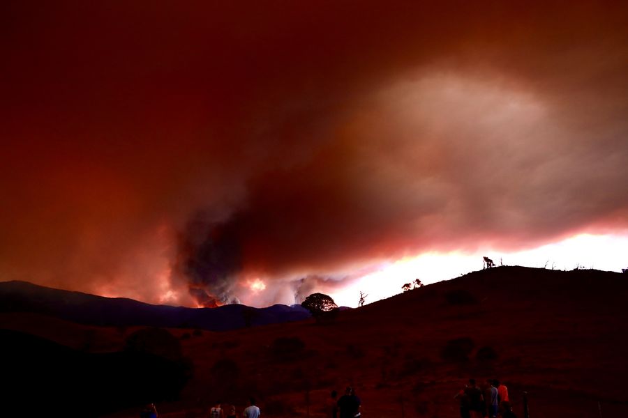 Photo taken on Jan. 28, 2020 shows the sky turned red by the Orroral fire at the Namadgi National Park in Canberra. (Xinhua/Chu Chen)