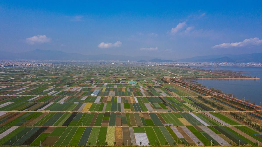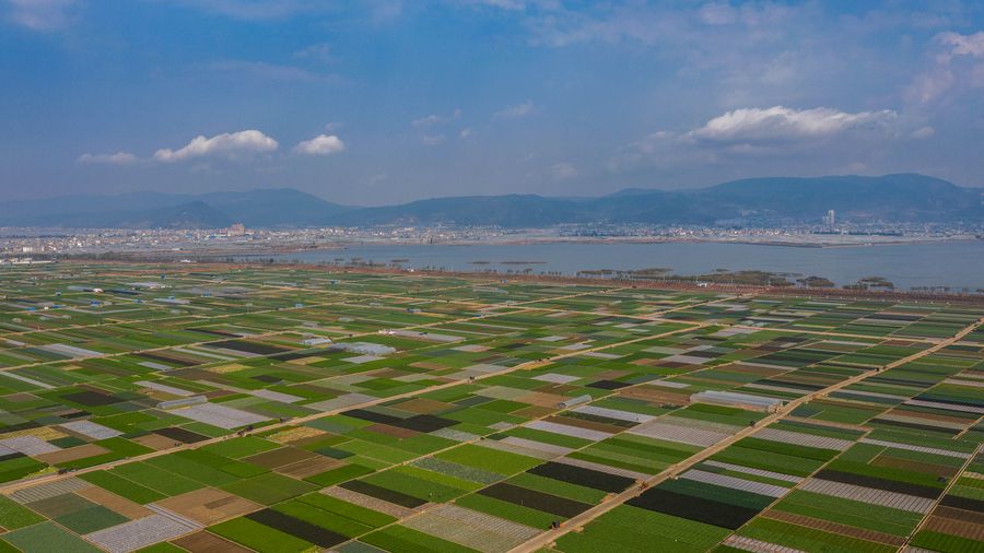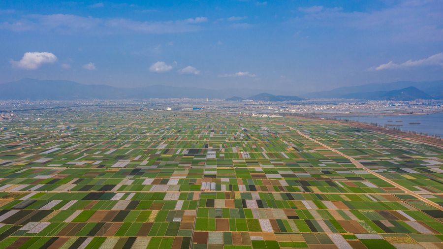 Aerial photo taken on March 3, 2020 shows the spring scenery of fields in Tonghai County, Yuxi City, southwest China's Yunnan Province. (Xinhua/Hu Chao)
