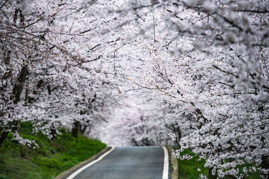Photo taken on March 12, 2020 shows the scenery of cherry blossoms in Guian New District, southwest China's Guizhou Province. (Xinhua/Tao Liang)