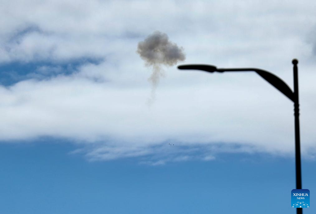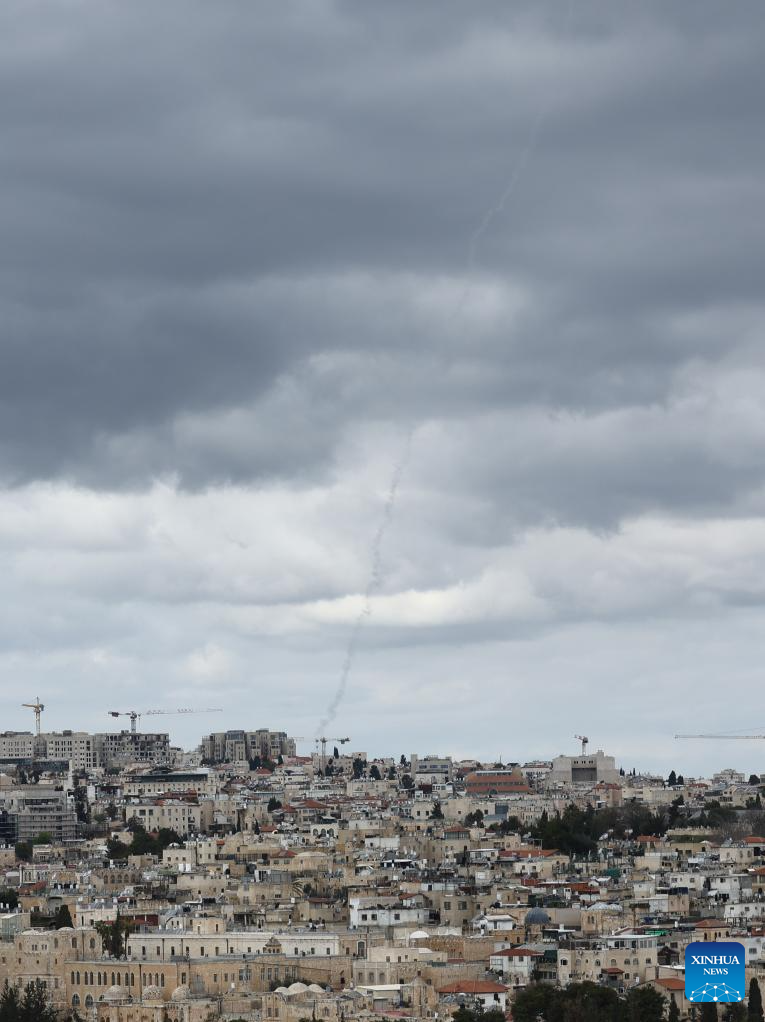 This photo taken on Feb. 28, 2026 shows smoke in the sky in Jerusalem. (Photo by Jamal Awad/Xinhua)