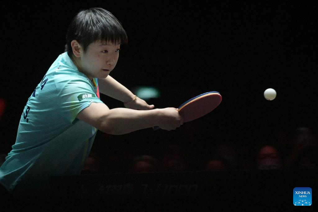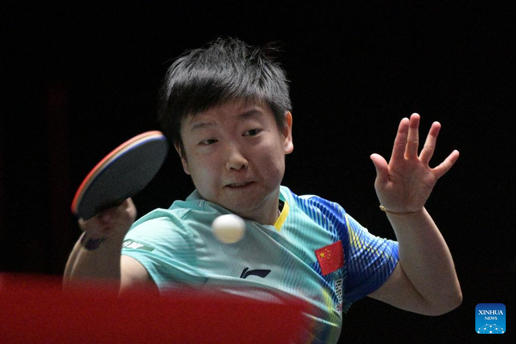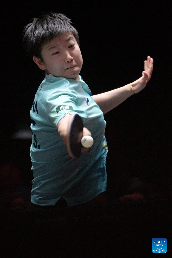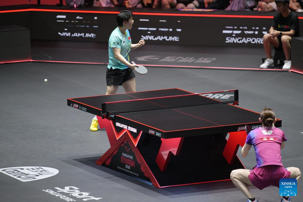 Sun Yingsha hits a return during the women's singles quarterfinal between Sun Yingsha of China and Hayata Hina of Japan at the World Table Tennis (WTT) Singapore Smash 2026 in Singapore on Feb. 28, 2026. (Photo by Then Chih Wey/Xinhua)