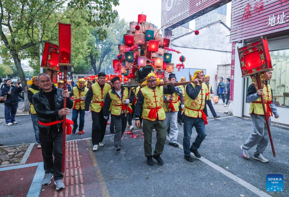 Folk artists parade in celebration of the upcoming Lantern Festival in Jinhua, east China's Zhejiang Province, Feb. 28, 2026. The Lantern Festival falls on the fifteenth day of the first month of the traditional Chinese calendar, or March 3 this year. (Xinhua/Xu Yu)