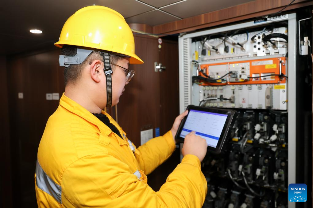 A worker collects data from a data cabinet with a hand-held device aboard a train at the Shanghai Signal & Communication Section of China Railway Shanghai Group Co., Ltd., in Shanghai, east China, Feb. 28, 2026. The China Railway Shanghai Group Co., Ltd. has deployed a variety of cutting-edge high-tech gears during this year's Spring Festival travel rush to further empower its staff members in rail inspection, vehicle maintenance and other missions to safeguard passengers on their way. (Xinhua/Wang Xiang)