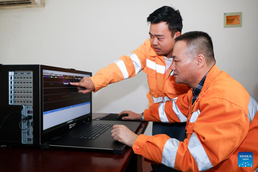 Workers analyze rail damage data with the smart rail damage identification and analysis system at a workshop of Shanghai Works Section of China Railway Shanghai Group Co., Ltd., in Shanghai, east China, Feb. 28, 2026. The China Railway Shanghai Group Co., Ltd. has deployed a variety of cutting-edge high-tech gears during this year's Spring Festival travel rush to further empower its staff members in rail inspection, vehicle maintenance and other missions to safeguard passengers on their way. (Xinhua/Wang Xiang)