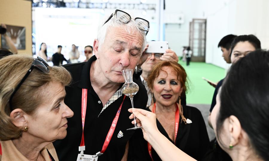 People learn about an agarwood product during the sixth China International Consumer Products Expo (CICPE) in Haikou, south China's Hainan Province, April 13, 2026. (Xinhua/Yang Guanyu)