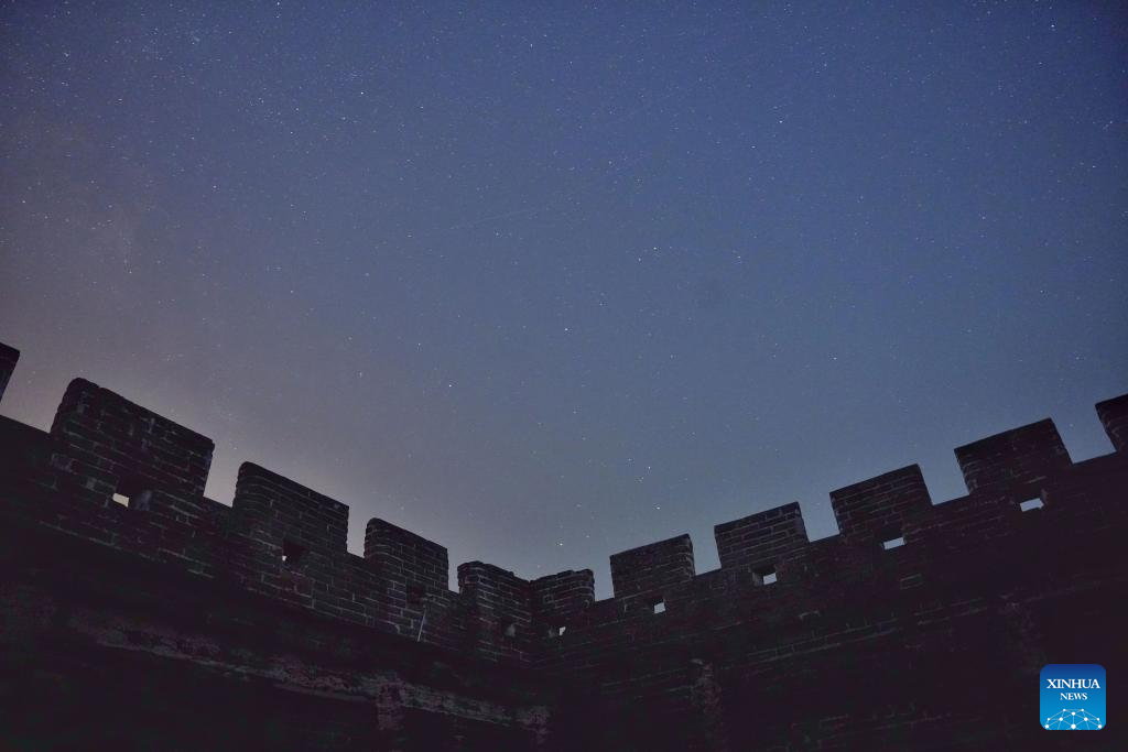 This photo taken on April 15, 2026 shows a view of the starry sky above the Jinshanling section of the Great Wall in Chengde City, north China's Hebei Province. (Xinhua/Xing Guangli)