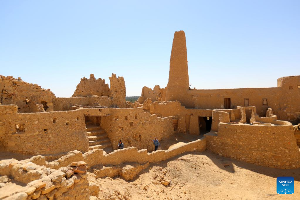 Tourists visit an old building complex around the Temple of Amun at Siwa Oasis in Matrouh Governorate, Egypt, on March 26, 2022. Siwa Oasis, in Egypt's Western Desert, is a renowned tourist destination in Egypt for its natural landscapes, historical ruins and cultural traditions. (Xinhua/Sui Xiankai)