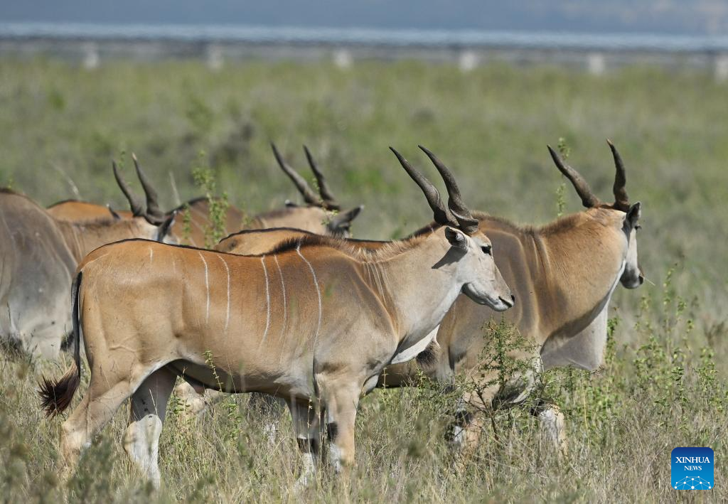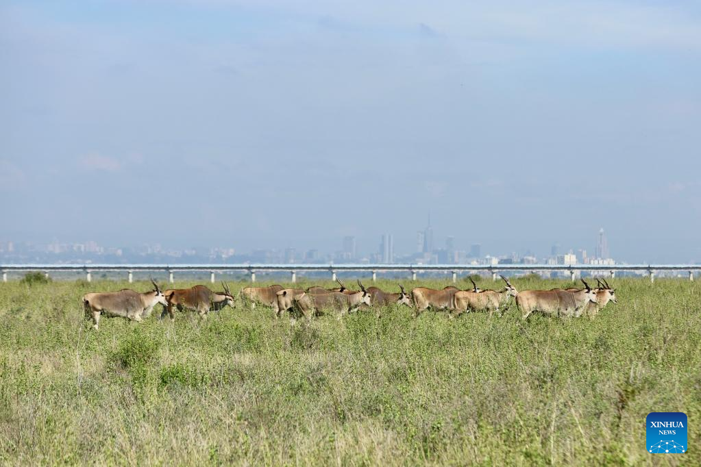 This photo taken on Feb. 26, 2026 shows a herd of elands at the Nairobi National Park in Kenya. The Nairobi National Park is one of the few capital-based reserves in the world. Spanning 117 square kilometers of savannah, forests, and wetlands dotted with valleys and seasonal lakes, the park shelters over 100 mammal species and 400 bird varieties. (Xinhua/Geng Xinning)