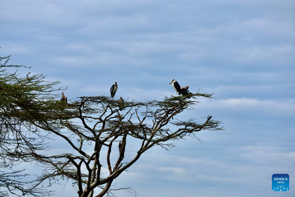 This photo taken on Feb. 26, 2026 shows marabou storks at the Nairobi National Park in Kenya. The Nairobi National Park is one of the few capital-based reserves in the world. Spanning 117 square kilometers of savannah, forests, and wetlands dotted with valleys and seasonal lakes, the park shelters over 100 mammal species and 400 bird varieties. (Xinhua/Liu Qiong)