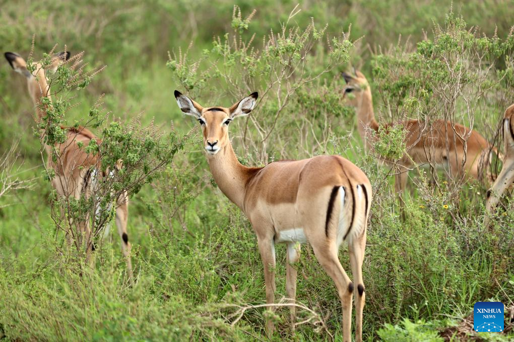 This photo taken on Feb. 26, 2026 shows impalas at the Nairobi National Park in Kenya. The Nairobi National Park is one of the few capital-based reserves in the world. Spanning 117 square kilometers of savannah, forests, and wetlands dotted with valleys and seasonal lakes, the park shelters over 100 mammal species and 400 bird varieties. (Xinhua/Geng Xinning)