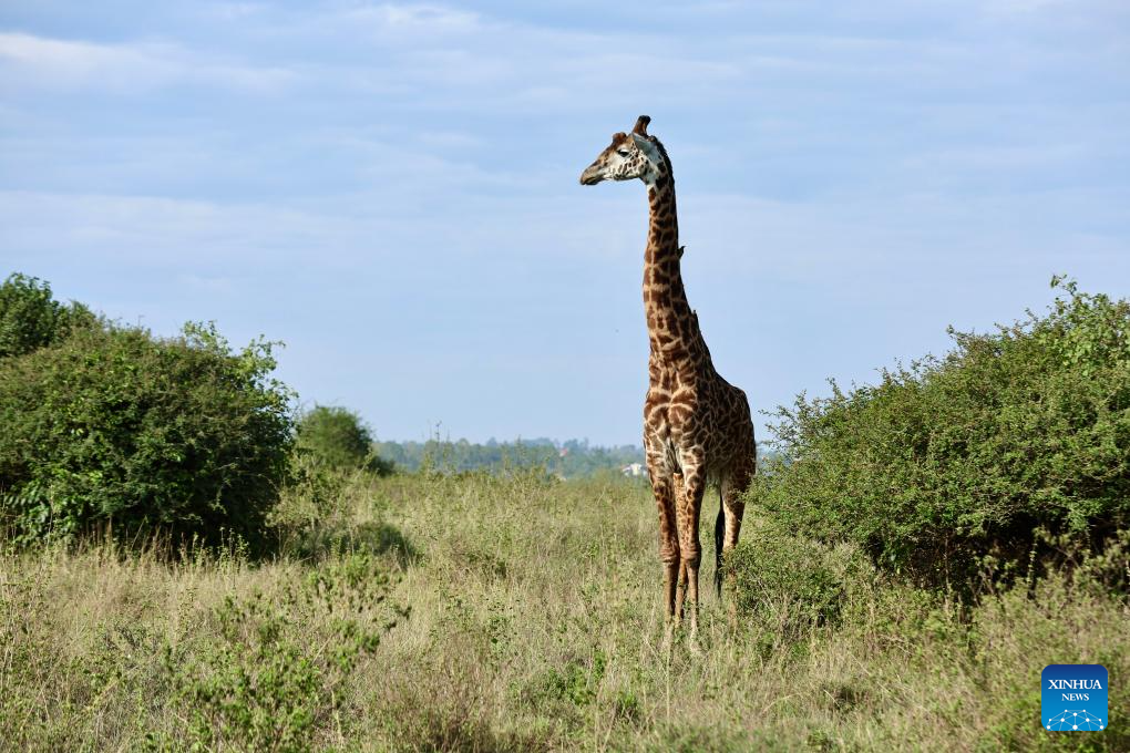 This photo taken on Feb. 26, 2026 shows a giraffe at the Nairobi National Park in Kenya. The Nairobi National Park is one of the few capital-based reserves in the world. Spanning 117 square kilometers of savannah, forests, and wetlands dotted with valleys and seasonal lakes, the park shelters over 100 mammal species and 400 bird varieties. (Xinhua/Geng Xinning)