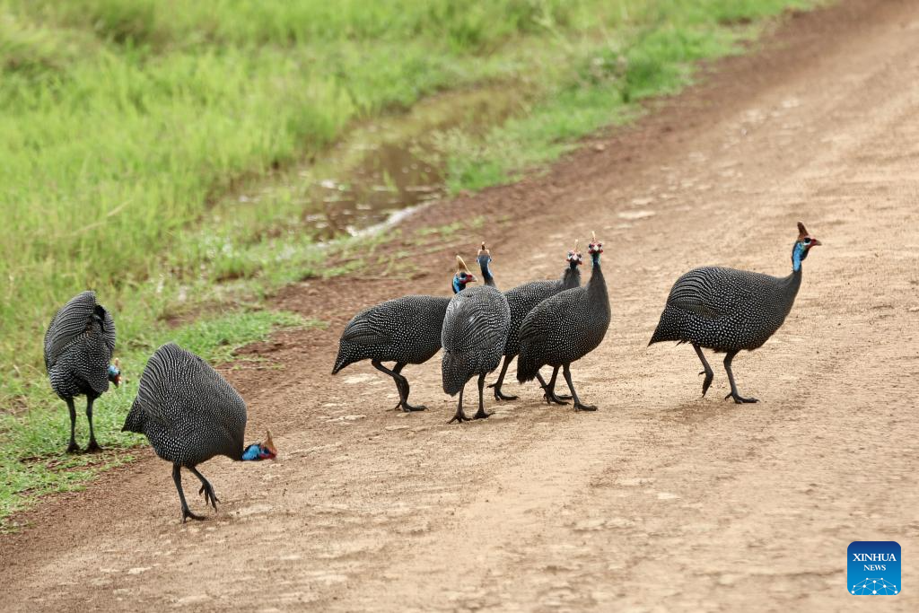 This photo taken on Feb. 26, 2026 shows guinea fowls at the Nairobi National Park in Kenya. The Nairobi National Park is one of the few capital-based reserves in the world. Spanning 117 square kilometers of savannah, forests, and wetlands dotted with valleys and seasonal lakes, the park shelters over 100 mammal species and 400 bird varieties. (Xinhua/Geng Xinning)