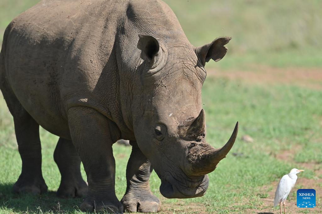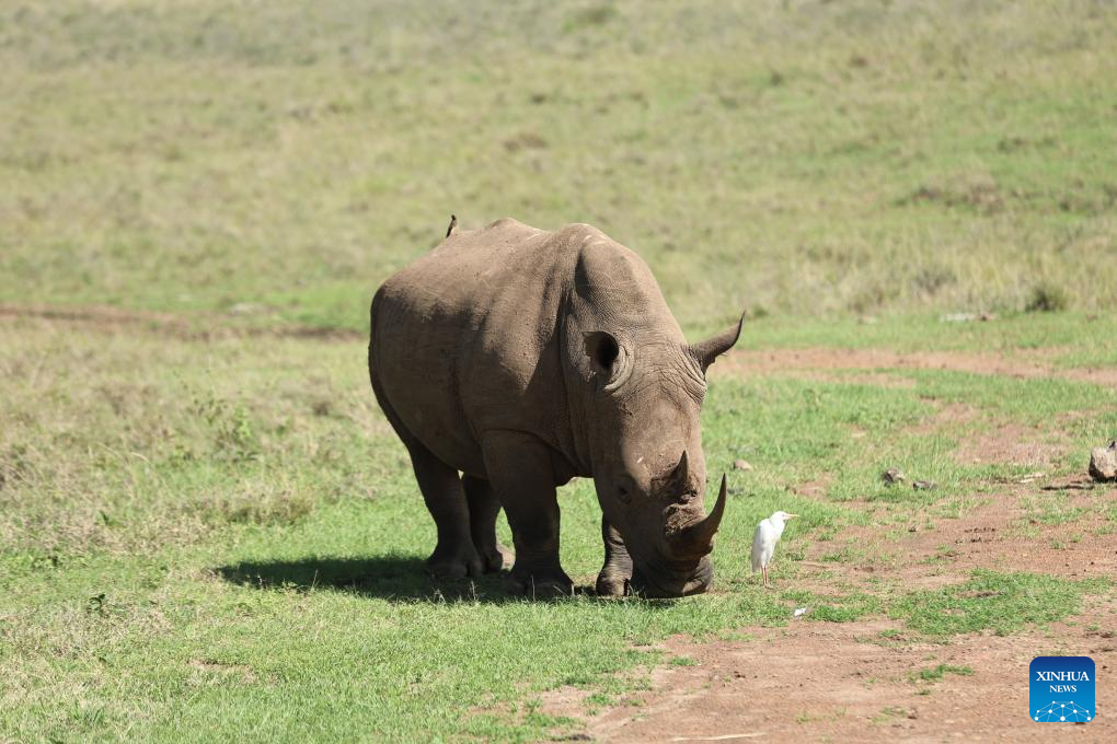 This photo taken on Feb. 26, 2026 shows a rhino at the Nairobi National Park in Kenya. The Nairobi National Park is one of the few capital-based reserves in the world. Spanning 117 square kilometers of savannah, forests, and wetlands dotted with valleys and seasonal lakes, the park shelters over 100 mammal species and 400 bird varieties. (Xinhua/Liu Qiong)