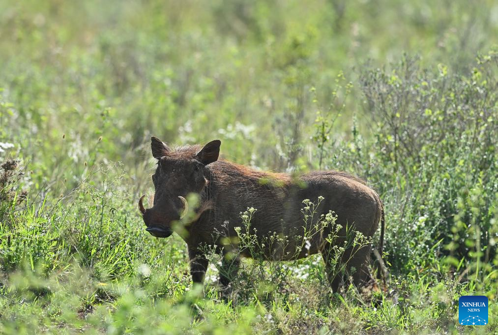This photo taken on Feb. 26, 2026 shows a warthog at the Nairobi National Park in Kenya. The Nairobi National Park is one of the few capital-based reserves in the world. Spanning 117 square kilometers of savannah, forests, and wetlands dotted with valleys and seasonal lakes, the park shelters over 100 mammal species and 400 bird varieties. (Xinhua/Liu Qiong)