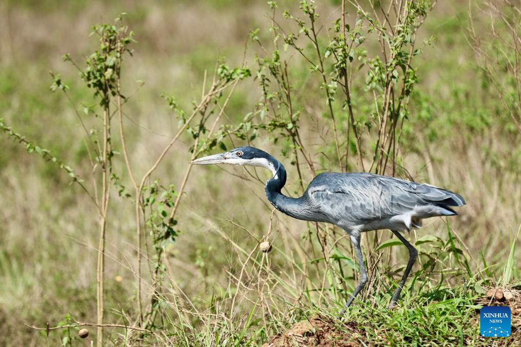 This photo taken on Feb. 26, 2026 shows a black-headed heron at the Nairobi National Park in Kenya. The Nairobi National Park is one of the few capital-based reserves in the world. Spanning 117 square kilometers of savannah, forests, and wetlands dotted with valleys and seasonal lakes, the park shelters over 100 mammal species and 400 bird varieties. (Xinhua/Geng Xinning)