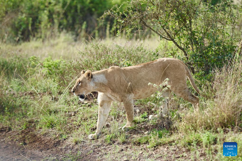 This photo taken on Feb. 26, 2026 shows a lion at the Nairobi National Park in Kenya. The Nairobi National Park is one of the few capital-based reserves in the world. Spanning 117 square kilometers of savannah, forests, and wetlands dotted with valleys and seasonal lakes, the park shelters over 100 mammal species and 400 bird varieties. (Xinhua/Geng Xinning)