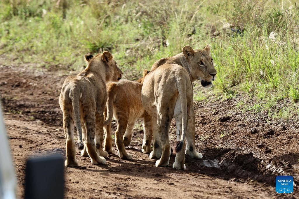 This photo taken on Feb. 26, 2026 shows lions at the Nairobi National Park in Kenya. The Nairobi National Park is one of the few capital-based reserves in the world. Spanning 117 square kilometers of savannah, forests, and wetlands dotted with valleys and seasonal lakes, the park shelters over 100 mammal species and 400 bird varieties. (Xinhua/Geng Xinning)