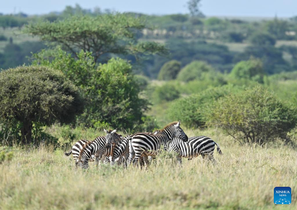 This photo taken on Feb. 26, 2026 shows a herd of zebras at the Nairobi National Park in Kenya. The Nairobi National Park is one of the few capital-based reserves in the world. Spanning 117 square kilometers of savannah, forests, and wetlands dotted with valleys and seasonal lakes, the park shelters over 100 mammal species and 400 bird varieties. (Xinhua/Liu Qiong)