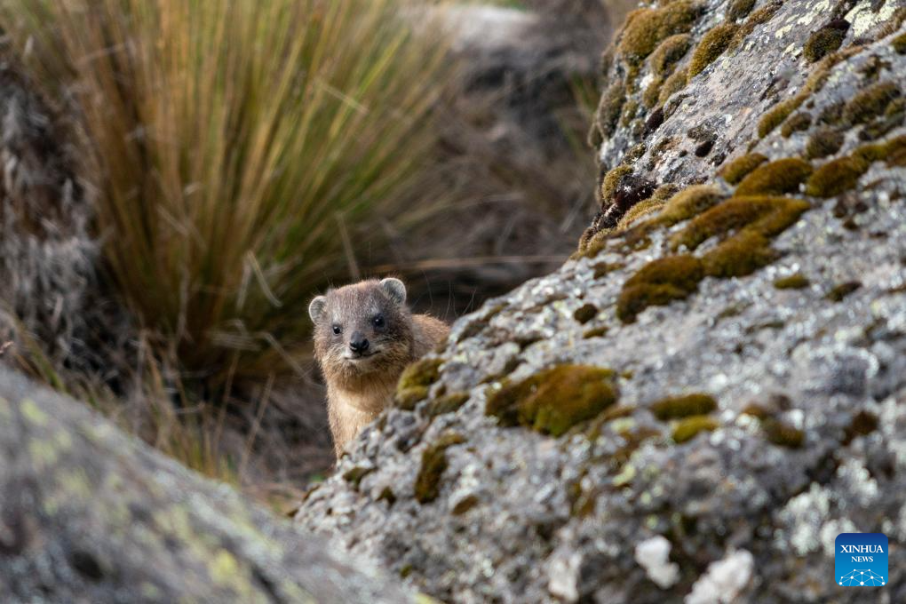 A rock hyrax is seen in Mount Kenya National Park, Meru County, central Kenya, April 11, 2026. Located close to the Equator in central Kenya, Mount Kenya is the second-highest mountain in Africa as its highest peak, Batian, reaches 5,199 meters.