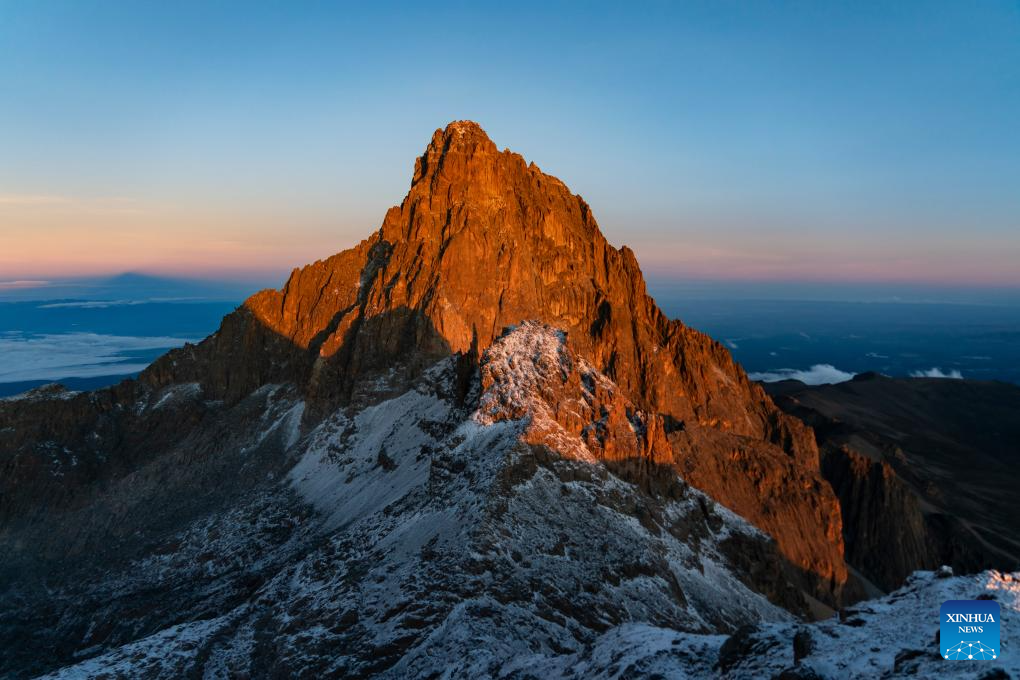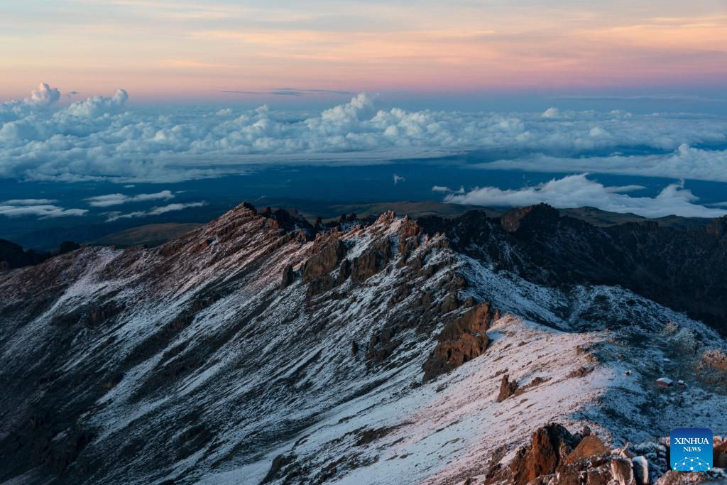This photo taken on April 12, 2026 shows the sunrise view seen from the summit of Point Lenana in Mount Kenya National Park, Meru County, central Kenya. Located close to the Equator in central Kenya, Mount Kenya is the second-highest mountain in Africa as its highest peak, Batian, reaches 5,199 meters.