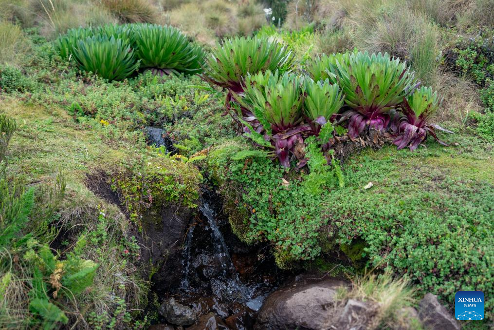 This photo taken on April 11, 2026 shows alpine plants in Mount Kenya National Park, Meru County, central Kenya. Located close to the Equator in central Kenya, Mount Kenya is the second-highest mountain in Africa as its highest peak, Batian, reaches 5,199 meters.