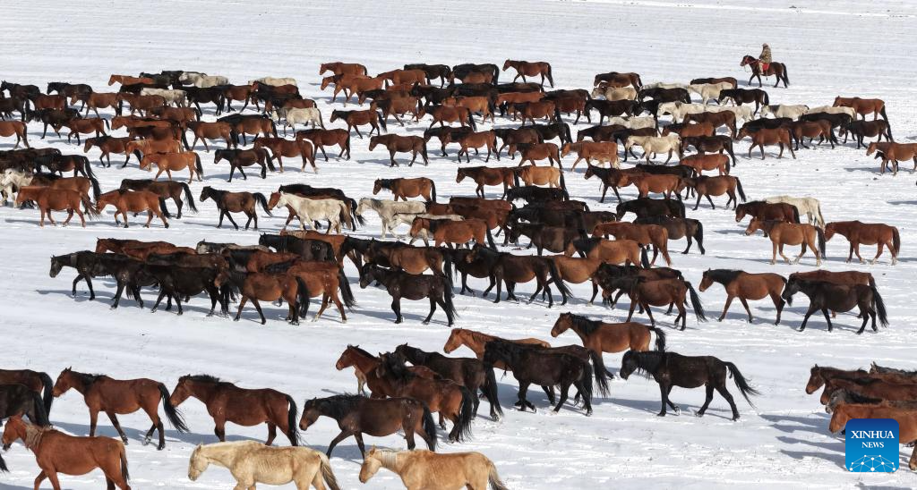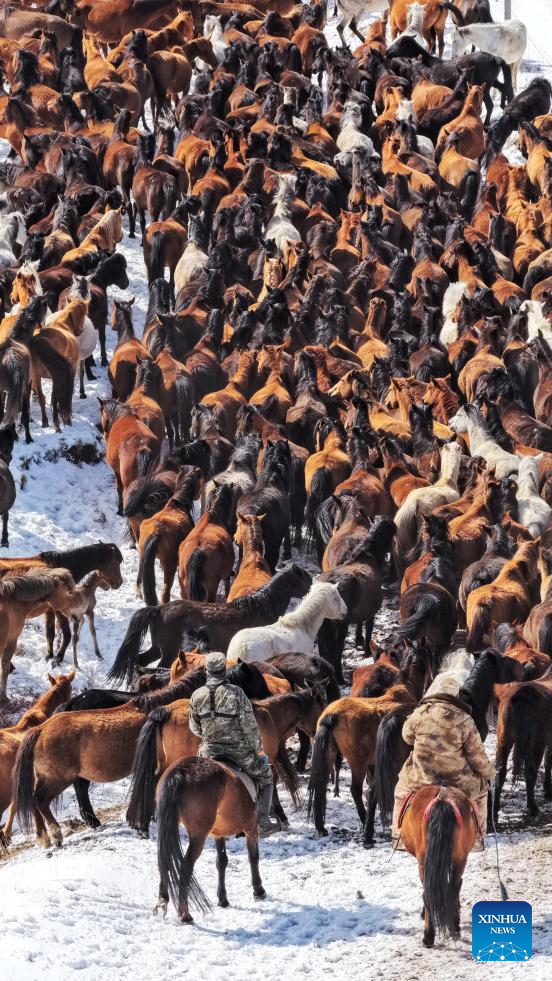 Horse herds move to natural grasslands during plowing season in NW China's Gansu