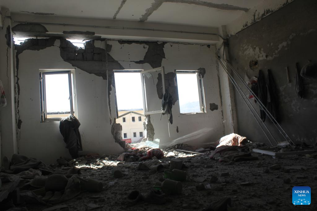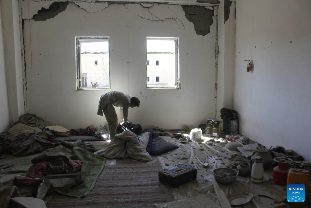 This photo taken on Feb. 28, 2026 shows an interior view of a damaged building at a temporary camp following a strike in Kandahar province, Afghanistan. Three Afghan returnees lost their lives and seven others were injured after Pakistani forces struck a temporary camp of returnees in southern Afghanistan's Kandahar province on Saturday, deputy spokesman of the Afghan government Hamdullah Fitrat said. (Photo by Arghand/Xinhua)