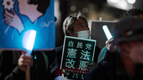 People protest during rally in front of PM's Office in Tokyo