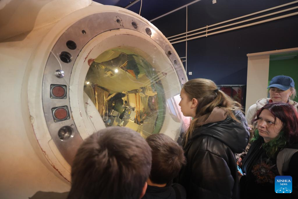 People visit the Museum of Space Exploration and Rocket Technology V.P. Glushko in St. Petersburg, Russia, April 12, 2026. St. Petersburg marked Russia's Cosmonautics Day with a series of events, including a concert at the Peter and Paul Fortress and free access to the Museum of Space Exploration and Rocket Technology V.P. Glushko, drawing large crowds of visitors. (Photo by Irina Motina/Xinhua)