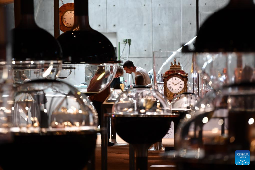People visit the International Museum of Horology (MIH) in La Chaux-de-Fonds, Switzerland, April 12, 2026. The MIH houses the collection devoted to the history of time measurement spanning from the 16th century to the present.