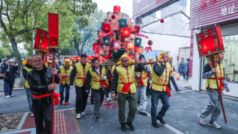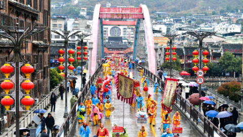 Folk artists perform in celebration of upcoming Lantern Festival in China's Zhejiang