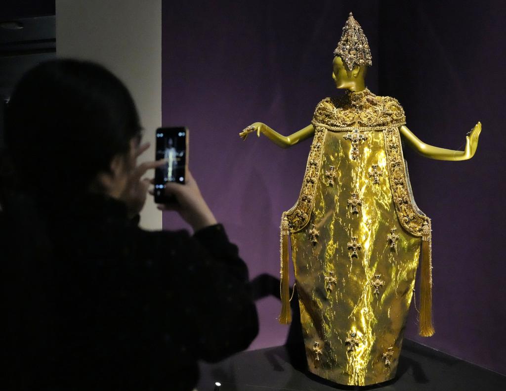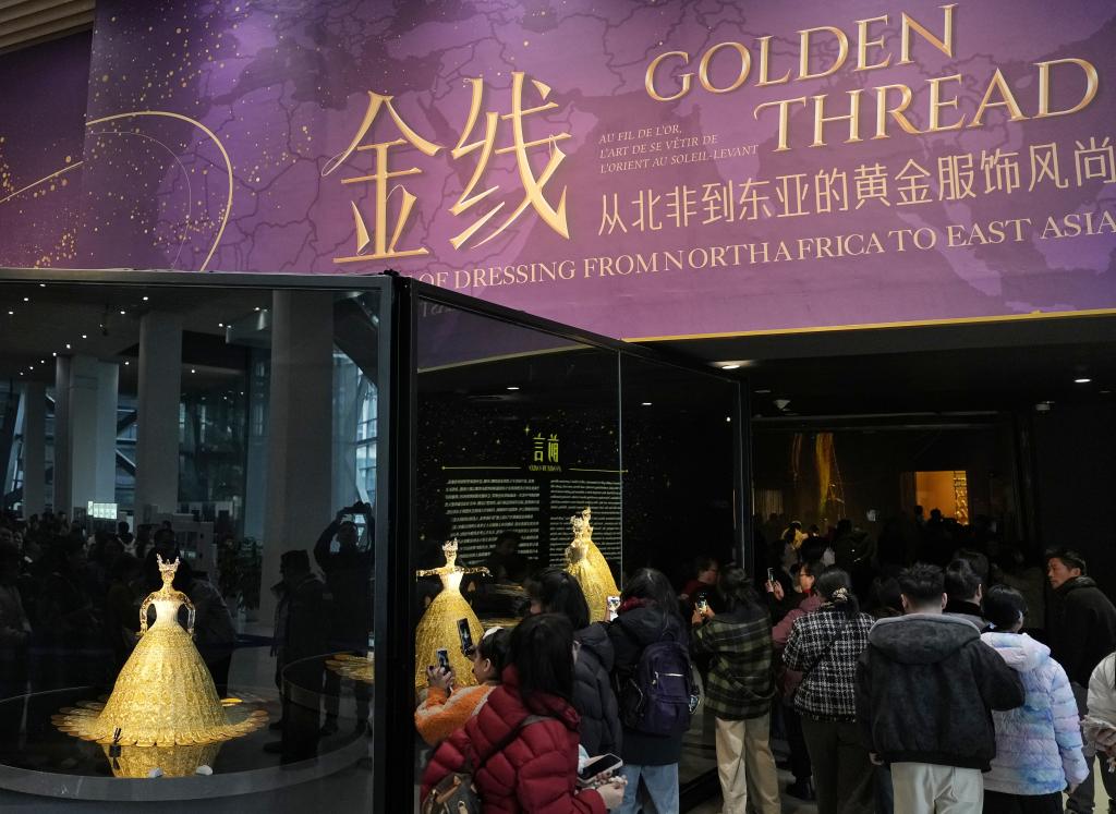 2月17日,观众在成都博物馆参观“金线——从北非到东亚的黄金服饰风尚”特展。