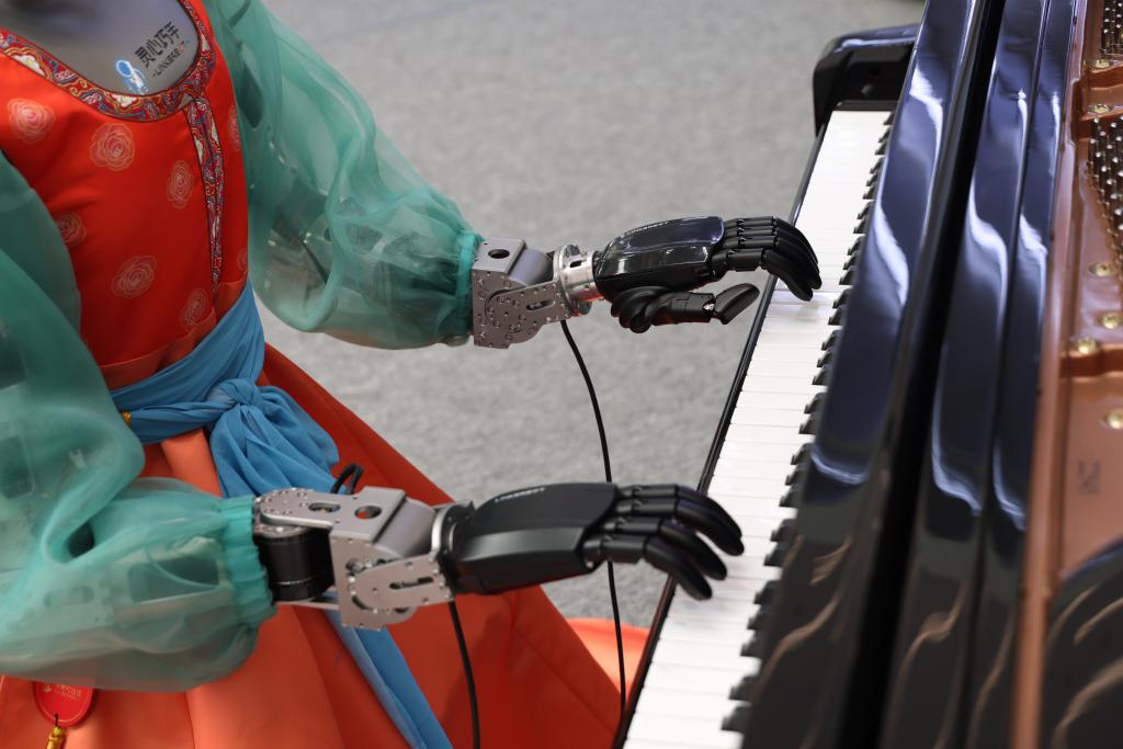 3月25日,在中关村国际创新中心,一款机器人在表演钢琴演奏。