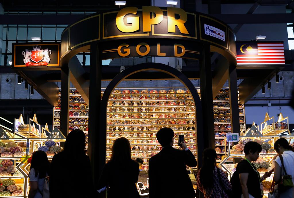 4月13日,人们在第六届消博会上了解马来西亚商品。