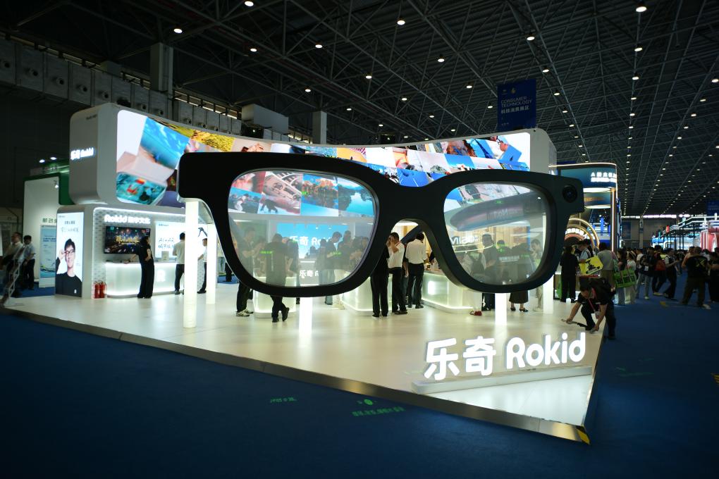 4月13日在第六届消博会科技消费展区拍摄的乐奇Rokid展台。