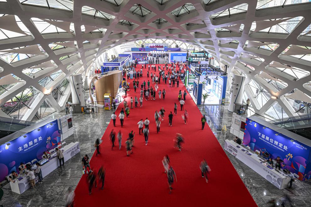 4月13日在海口拍摄的第六届消博会现场。