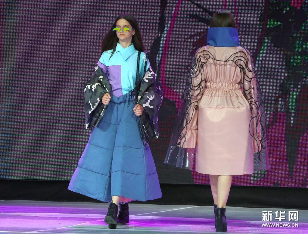 6月9日,在白俄羅斯明斯克,模特在時(shí)裝設(shè)計(jì)與攝影大賽上展示參賽作品。新華社發(fā)(任科夫攝)