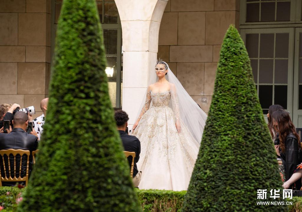 7月7日,模特在法國(guó)巴黎高級(jí)定制時(shí)裝周上展示Zuhair Murad品牌2021/2022秋冬新品。