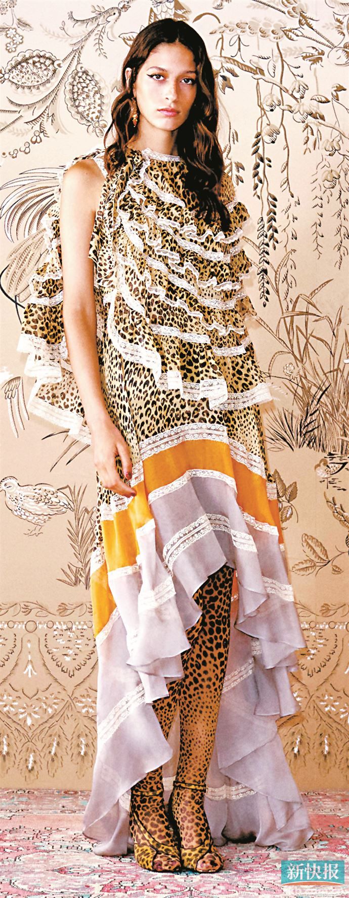 通过层层叠叠的荷叶边或装饰物,打造如海浪层层叠叠漫过的连衣裙装(也称“层叠垂坠裙”)构建起今季时尚圈柔韧多彩的浪漫叙事。