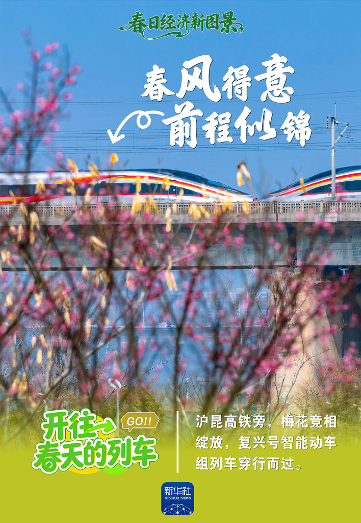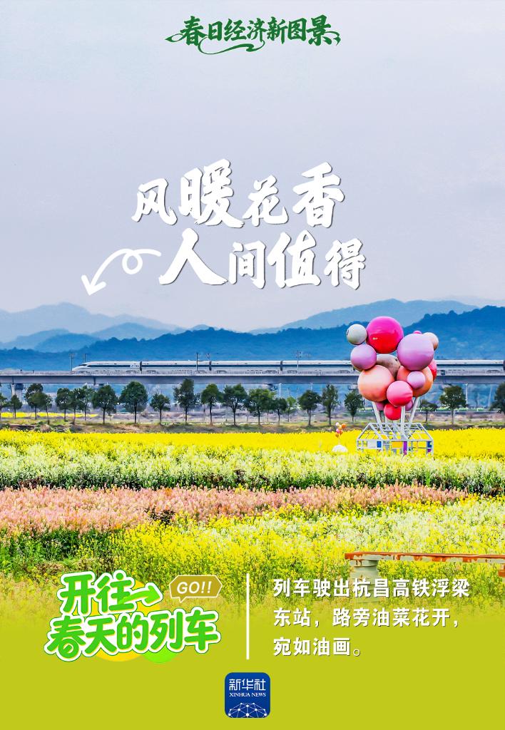 从武夷山的樱花茶园,到居庸关的花海长城;从沪昆沿线的梅花竞放,到川渝黔遍野的油菜花海……一趟趟“赏花专列”穿越春光,将春天的“颜值”精准送达游客心间;一次次拥抱花海的奔赴,照见“赏花经济”的蓬勃活力。跟随海报,一起搭乘“开往春天的列车”,遇见一路芳华、尽览春日如画。