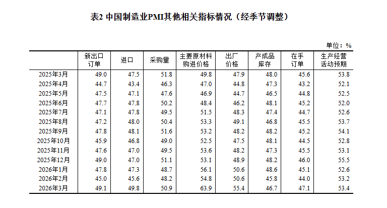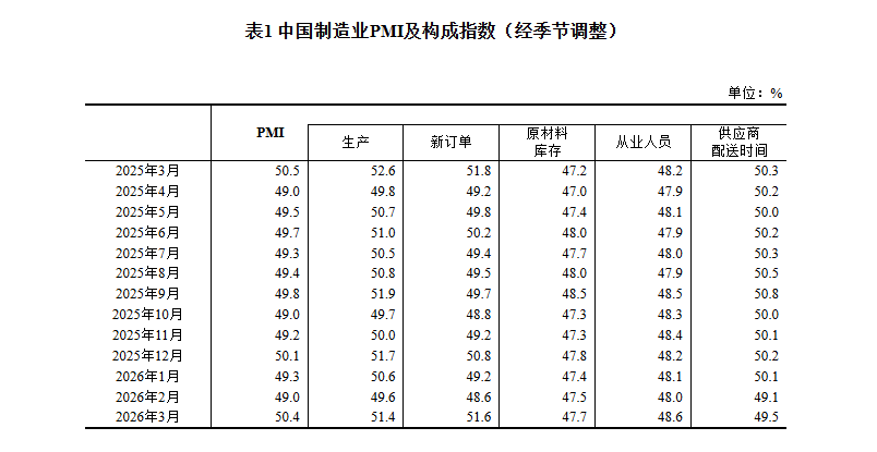 生产指数为51.4%,比上月上升1.8个百分点,表明制造业生产活动加快。