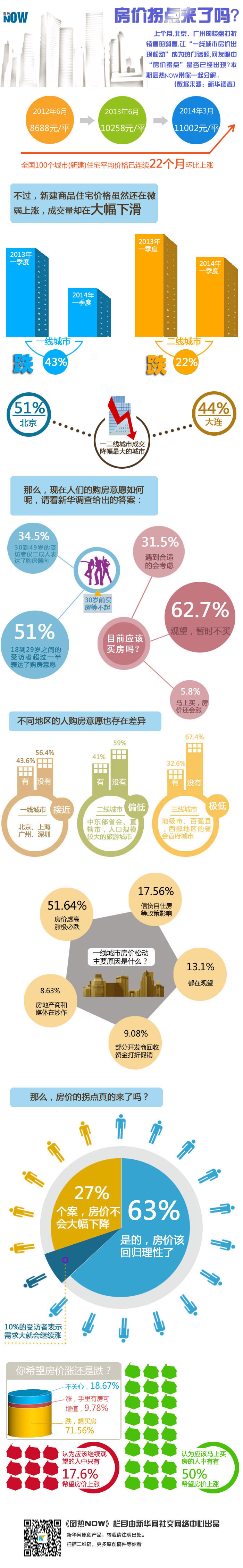 4月1日,中指院發(fā)布2014年3月中國房地產(chǎn)指數(shù)系統(tǒng)百城價格指數(shù)報(bào)告,在房價漲幅趨緩的同時,成交量也大幅下滑,上個月,北京、廣州的樓盤打折銷售的消息,讓“一線城市房價出現(xiàn)松動”成為熱門話題,“新華調(diào)查”欄目推出了“一線城市房價是否到了拐點(diǎn)?”的專題調(diào)查,那么,網(wǎng)友眼中“房價拐點(diǎn)”是否已經(jīng)出現(xiàn)?本期圖熱NOW帶你一起分解。